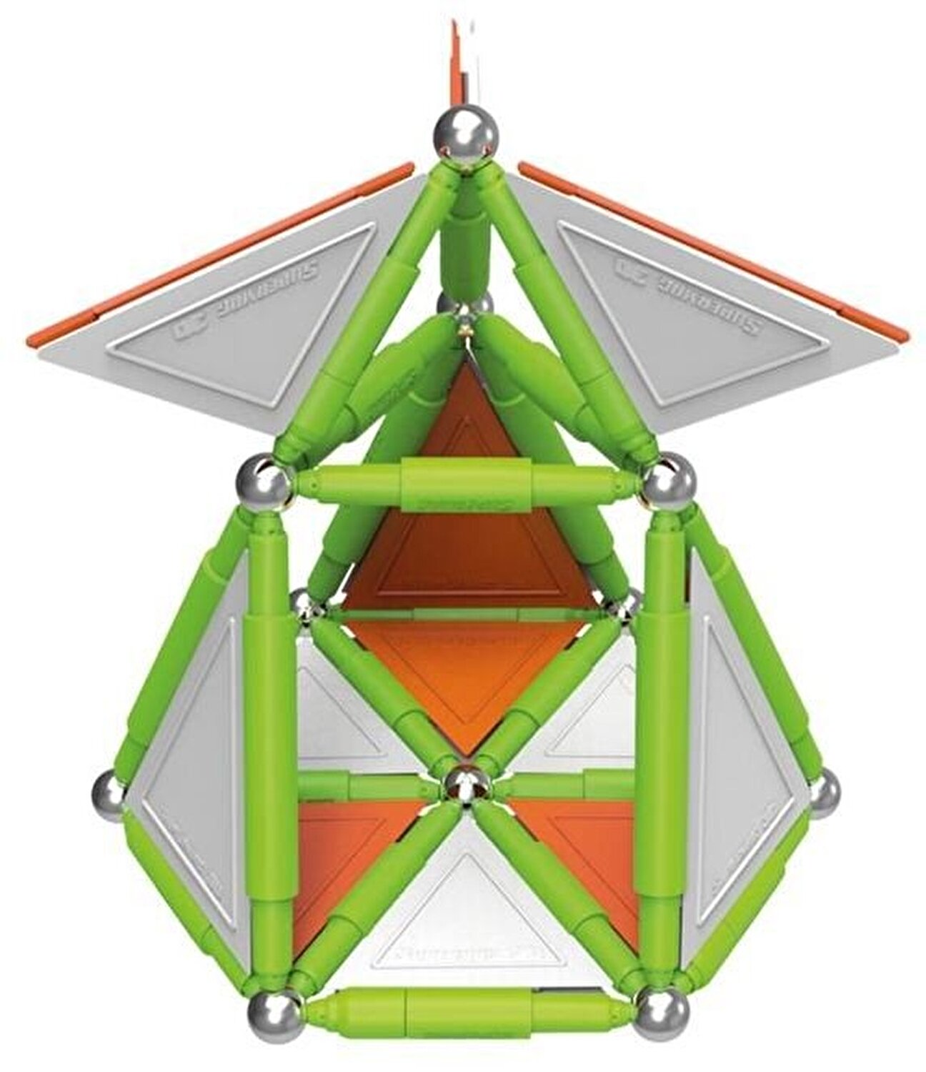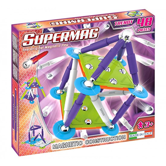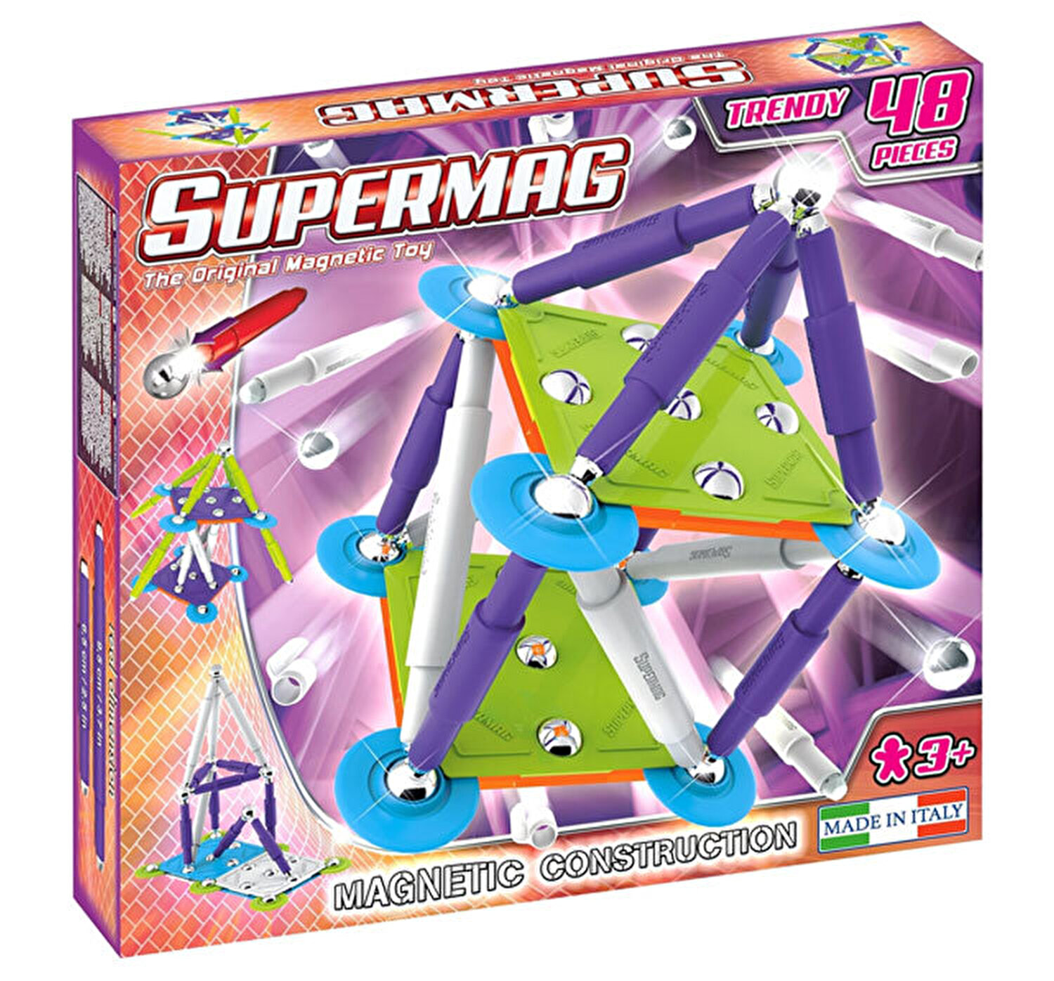 Seturile Supermag sunt caracterizate prin gama variata de piese colorate care urmeaza a fi conectate prin bilute de magnet super solide, astfel contribuind la formarea diverselor modele de figurine.