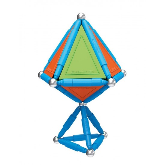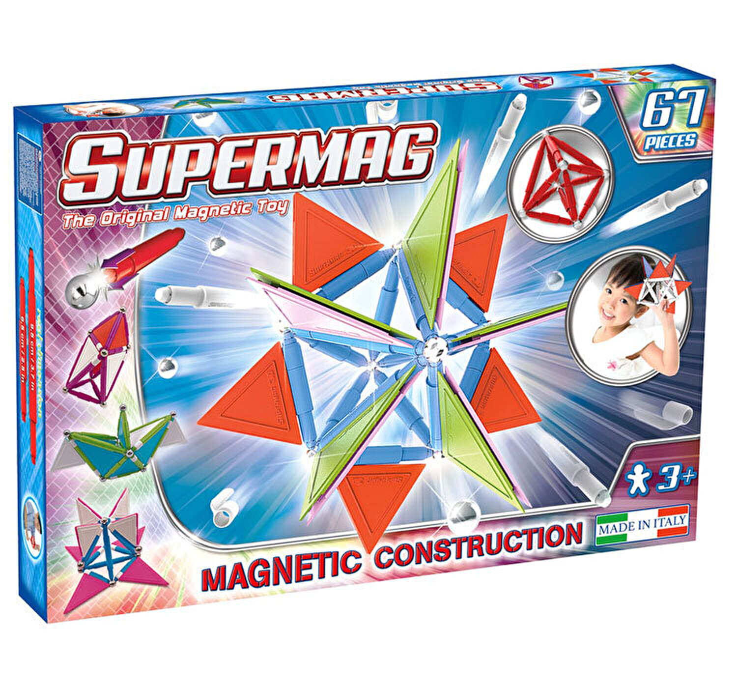Seturile Supermag sunt caracterizate prin gama variata de piese colorate care urmeaza a fi conectate prin bilute de magnet super solide, astfel contribuind la formarea diverselor modele de figurine.