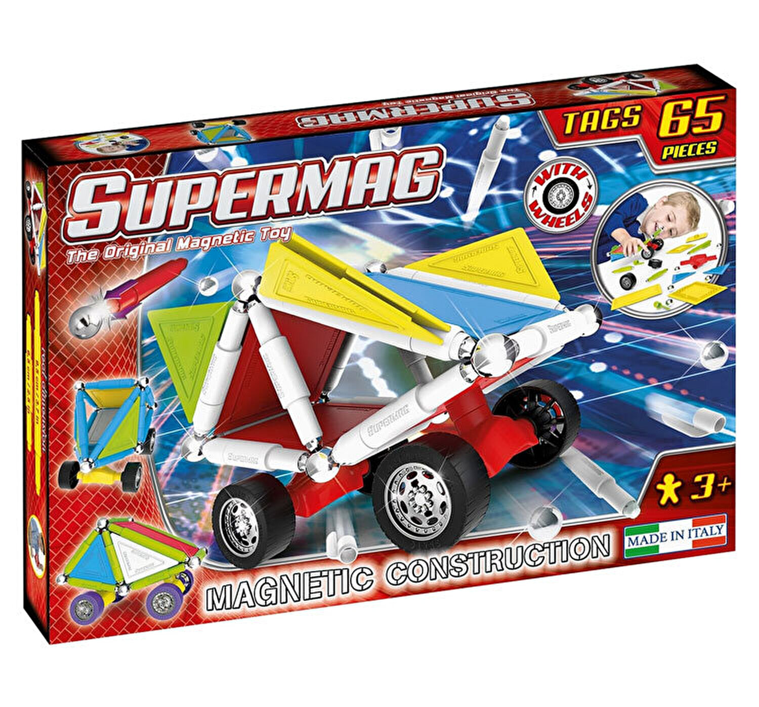 Set de constructie magnetic Supermag Wheels 65 piese
