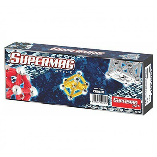 Seturile Supermag sunt caracterizate prin gama variata de piese colorate care urmeaza a fi conectate prin bilute de magnet super solide, astfel contribuind la formarea diverselor modele de figurine.