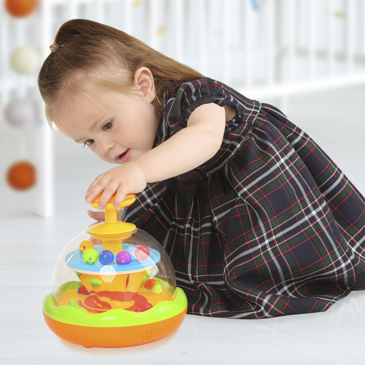 Titirezul muzical, este o jucarie interesanta ce va fi pe placul oricarui copil si il v-a distra cu melodii vesele. Atunci cind apasati minerul titirezului, caruselul incorporat in jucarie incepe sa se roteasca: margelele colorate sar vesele, iar broasca testoasa, buburuza, omida si melcul se invirt in timp ce se aud melodii placute. Jucaria dezvolta motricitatea fina si a perceptiei culorilor.