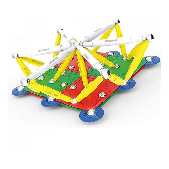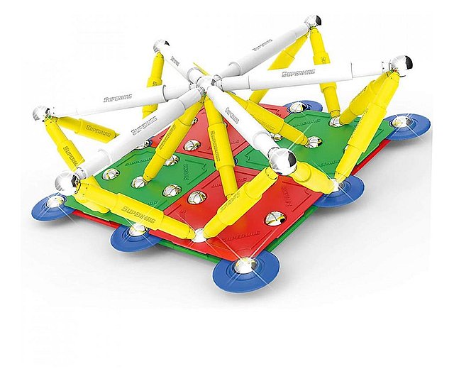 Seturile Supermag sunt caracterizate prin gama variata de piese colorate care urmeaza a fi conectate prin bilute de magnet super solide, astfel contribuind la formarea diverselor modele de figurine.