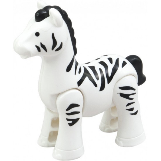Jucaria Zebra de la Kiddieland este un animalut care are 5 puncte de articulatie. Prin intermediul acestui joc copilul se joaca si invata culorile, forma animalului isi dezvolta abilitatile motorii fine iar sunetele care apar la miscarea articulatiilor ii ofera o caracteristica aparte.