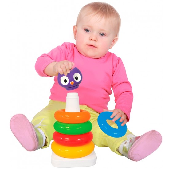Jucaria interactiva - Piramida Bufnita v-a incanta copilul datorita culorilor sale vii. Functionalitate: dezvolta abilitatile motorii fine, perceptia si coordonarea spatiului. Bufnita poate fi folosita ca zornaitoare. Jucaria este fabricata din plastic de calitate inalta. In set sunt 5 inele multicolore si o fata de bufnita. Recomandat pentru copiii de la 12 luni