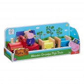 Set din lemn trenulet si figurina bunicului Peppa Pig