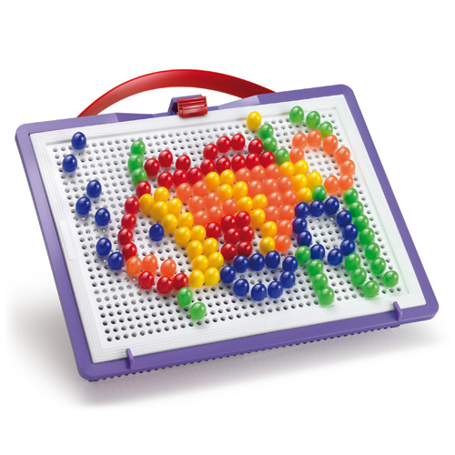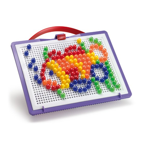Continut set: suport (22 x 16 cm), 140 piese (10 mm), cutie comoda pentru transportare si pastrare