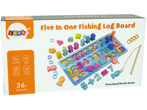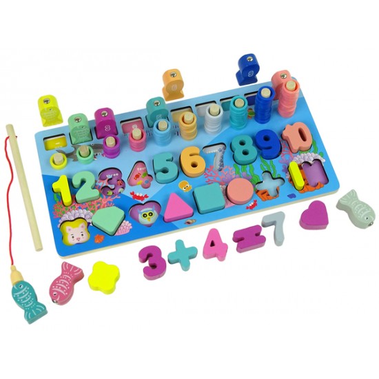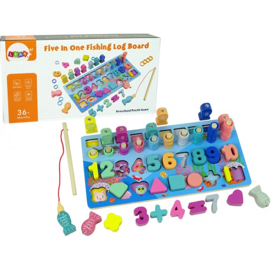Set educativ din lemn 5 in 1 Numaratoare, Forme, Pescuit, Cifre, Matematica