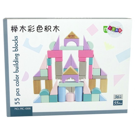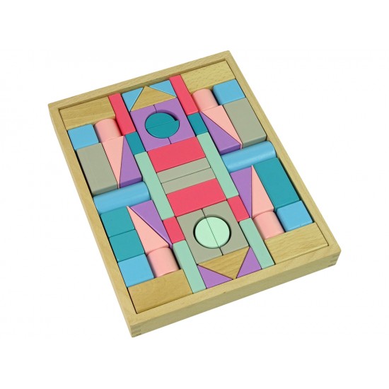 Set Castel blocuri din lemn pastelate diverse forme 55 el