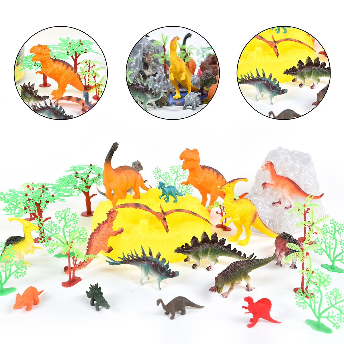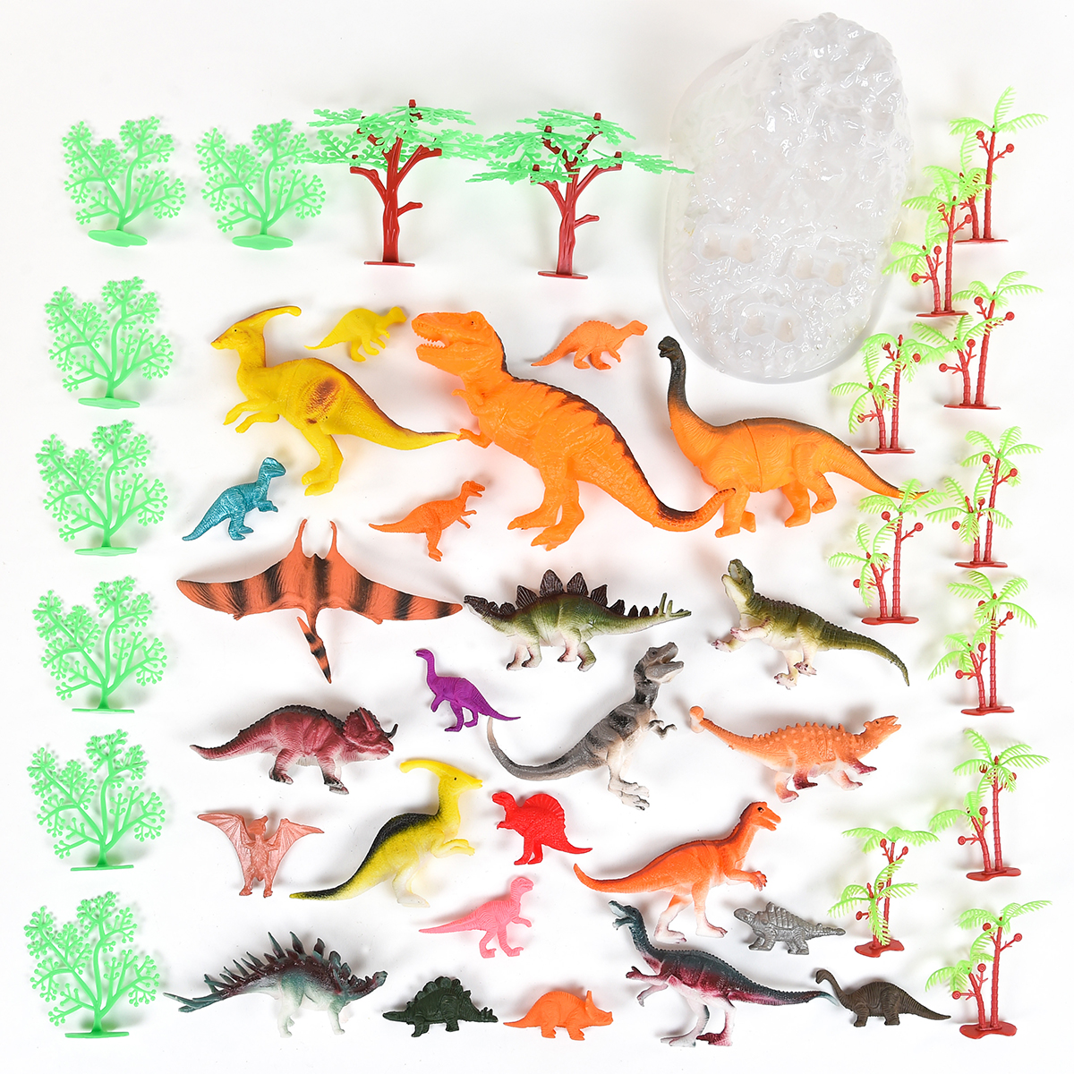 45 de elemente! Dinozauri si diferite accesorii pentru un joc creativ.