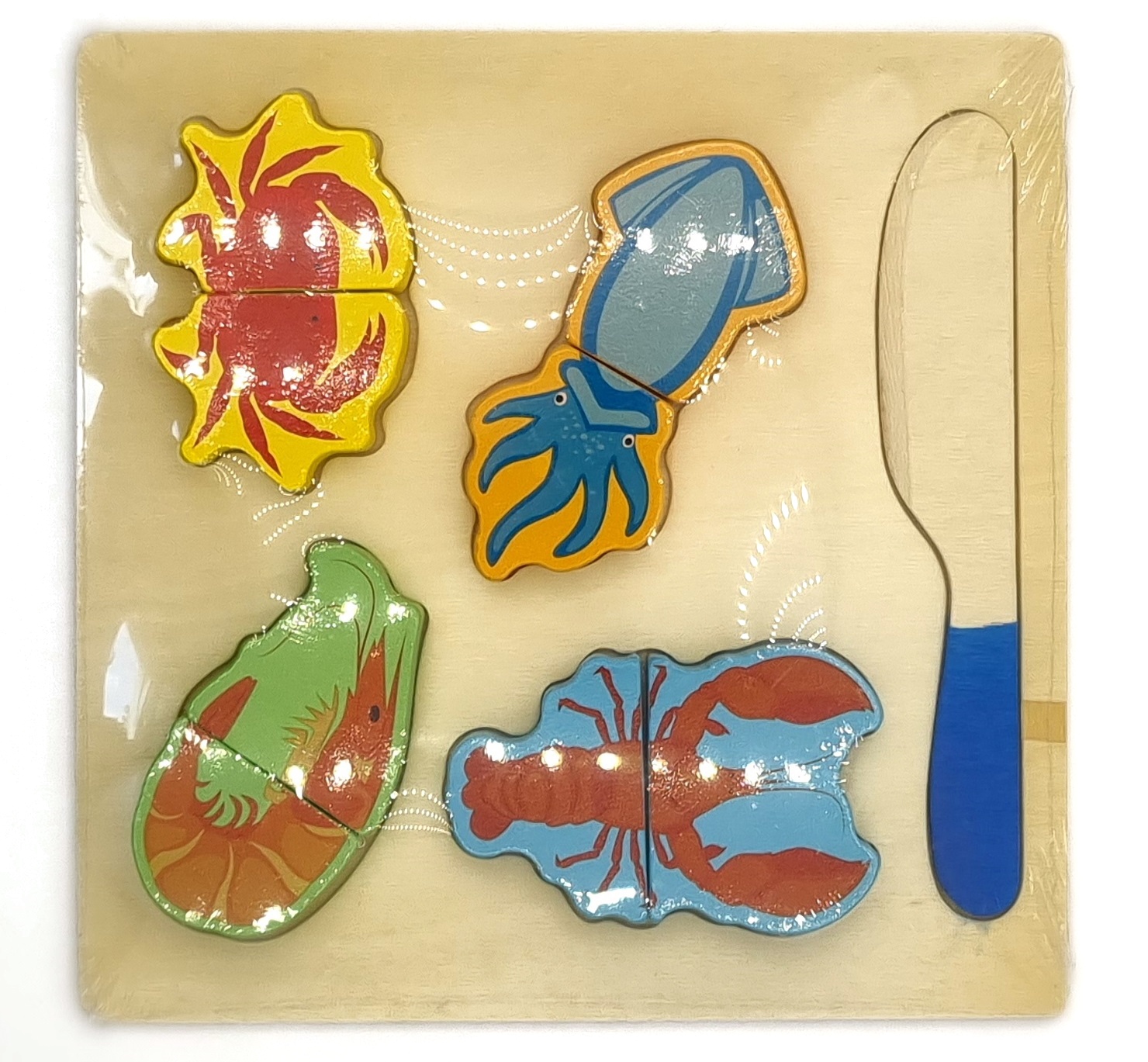 Jumatatile de alimente sunt atasate impreuna cu velcro, astfel incat pot fi taiate cu usurita dar si conectate ulterior. Potrivirea jumatatilor va fi o adevarata provocare pentru cei mici, astfel isi vor dezvolta abilitatile fizice si gandirea logica.