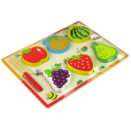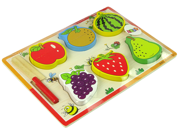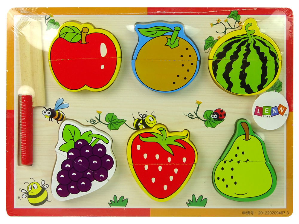 Jumatatile de fructe sunt atasate impreuna cu velcro, astfel incat pot fi taiate cu usurita dar si conectate ulterior. Potrivirea jumatatilor va fi o adevarata provocare pentru cei mici, astfel isi vor dezvolta abilitatile fizice si gandirea logica.