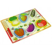 Cutitasul din lemn este pregatit pentru a taia legumele in jumatati, astfel setul va deveni un excelent puzzle de dezvoltare pentru copilasi.