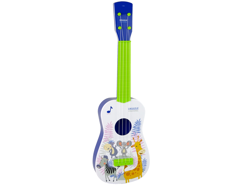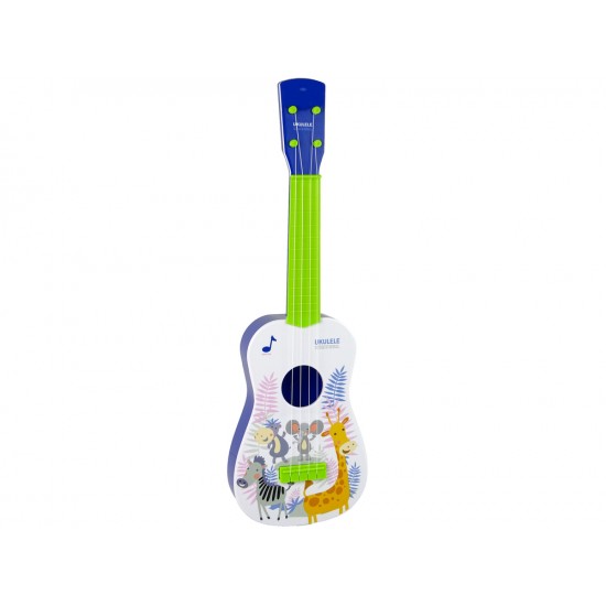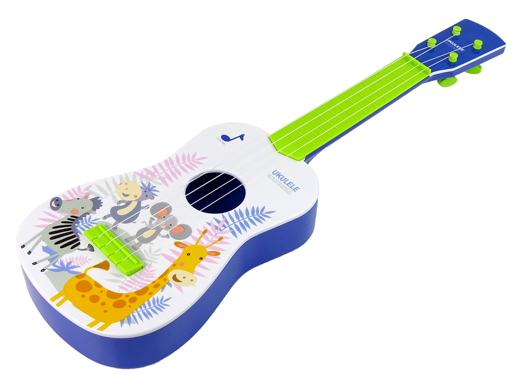 Chitara de jucarie Ukulele albastra cu imagini animale