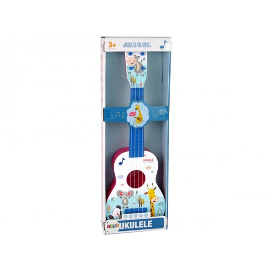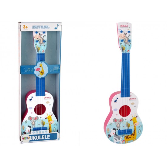 10961 Chitara de jucarie Ukulele roz cu imagini animale