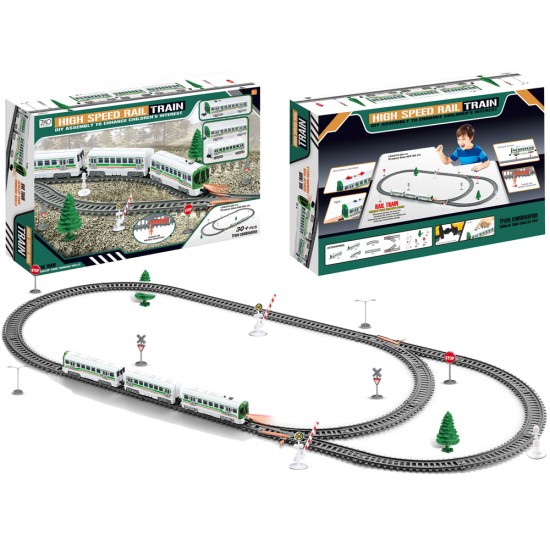 Set Cale Ferata, Locomotiva cu doua viteze si lumini, doua vagoane si accesorii
