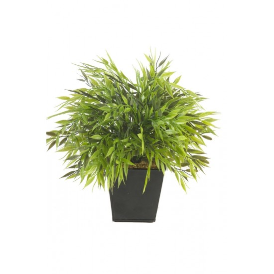 Un amestec echilibrat de frunze de bambus artificial, cu inaltime de 25 cm, intr-un ghiveci de zinc cu aspect rustic. Frunzele fine, fabricate din mase plastice, aduc un aer natural si modern in orice spatiu, fiind ideale pentru birouri sau colturi zen.
