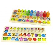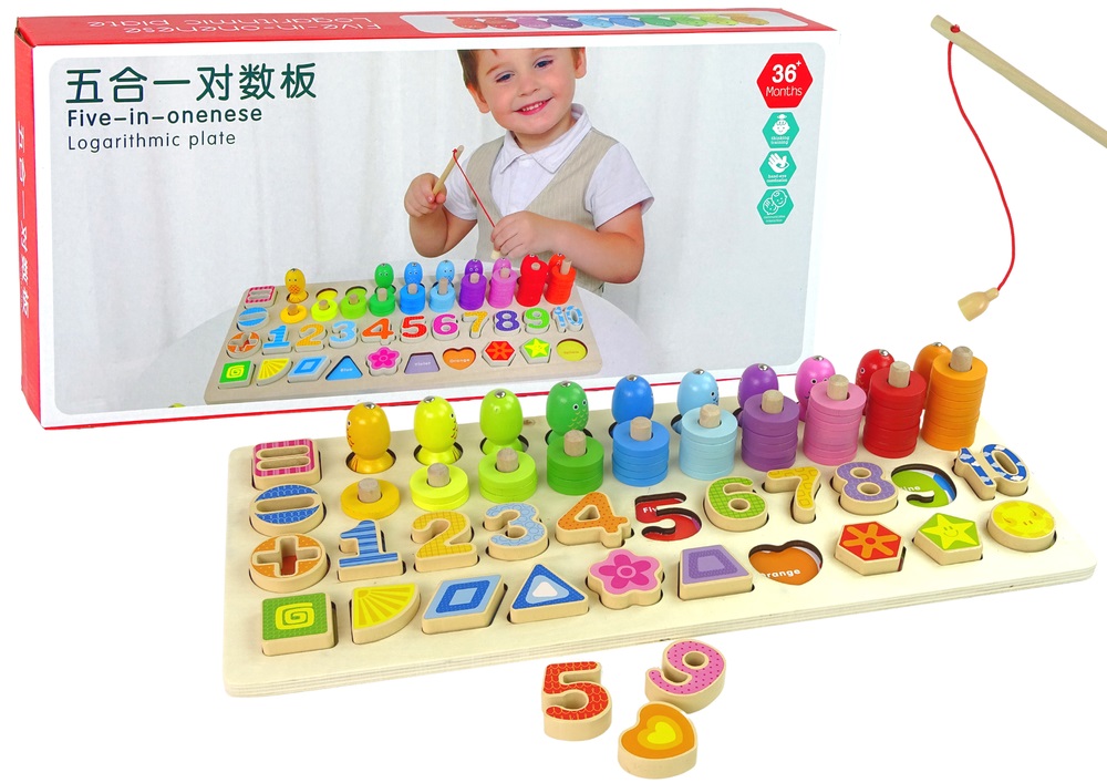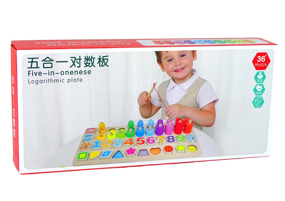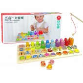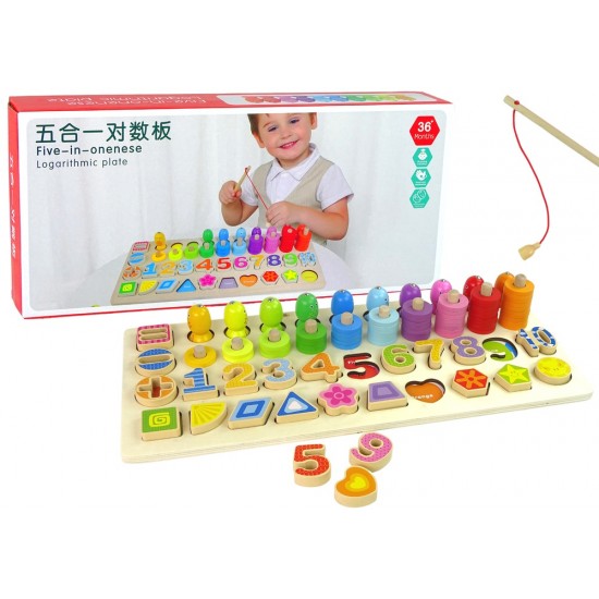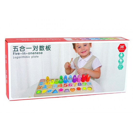 Set placa din lemn 4in1, cifre, numaratoare, figuri geometrice, pescuit
