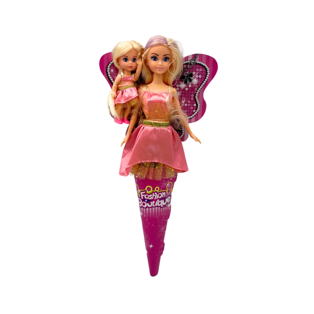 Aceasta papusica este un cadou excelent pentru fetitele care iubesc sa creeze lumi fantastice si sa joace roluri diverse. Aceasta papusa este disponibila in doua variante cu vestimentatie diferita si o papusica mai mica, de 9 cm pentru o distractie mai interactive, cu par lung si matasos care poate fi pieptanat si coafat.