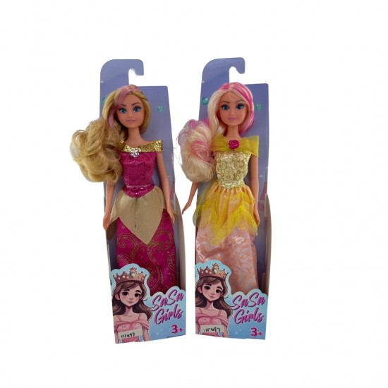 Aceasta papusica este un cadou excelent pentru fetitele care iubesc sa creeze lumi fantastice si sa joace roluri diverse. Aceasta papusa este disponibila in doua variante, in rochie galben si in rochie roz, cu par lung si matasos care poate fi pieptanat si coafat.