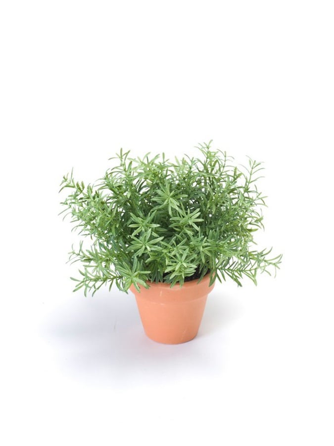 Aceasta tufa de rozmarin artificial de 20 cm este prezentata intr-un ghiveci ceramic elegant. Frunzele sale subtiri, verde deschis, sunt realizate din mase plastice cu aspect natural, oferind un aer proaspat si ordonat decorului tau.