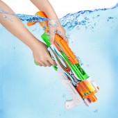 Fast-Fill Skins Hyperload iti permite sa iti reumpli blasterul in doar o secunda si sa revii la actiune cu mult inaintea adversarilor tai. Doar scufunda, umple si inchide cu tehnologia rapida de etansare. Metoda rapida de umplere si capacitatea de 500 ml de apa garanteaza ca vei fi cel mai rapid si primul in orice lupta cu apa! Aceasta este o combinatie excelenta intre calitate, design si pret accesibil. Dimensiuni: 35 x 6.5 x 23 cm