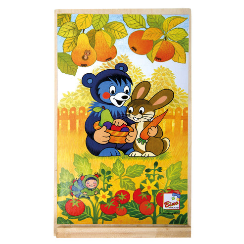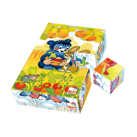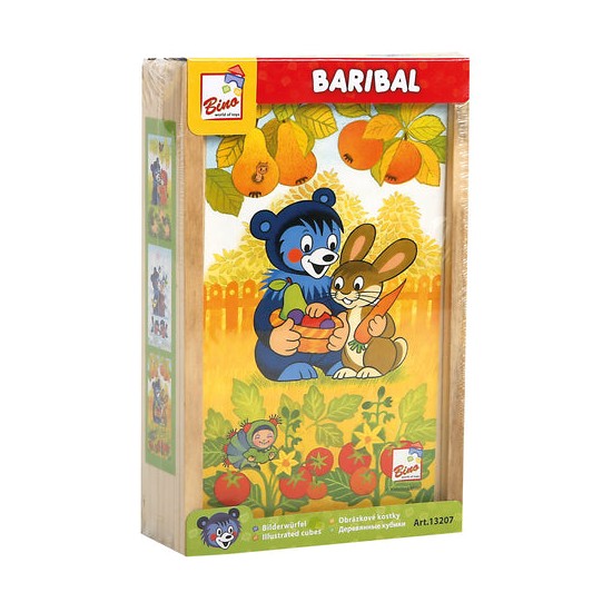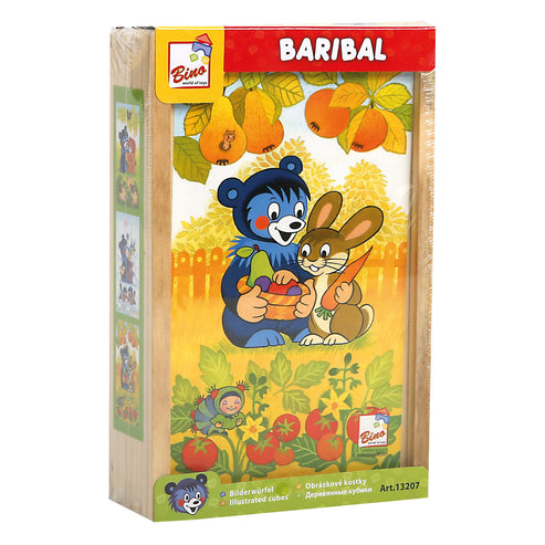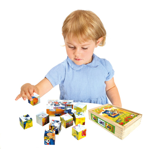 Set 15 cuburi puzzle din lemn pentru copii, 6 imagini, Ursul Baribal