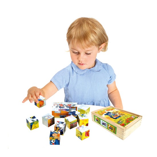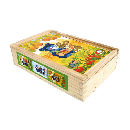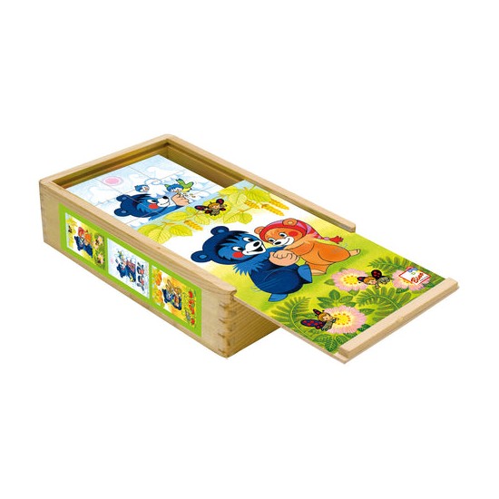 Cu acest set de cuburi din lemn se pot realiza 6 puzzle-uri cu imagini colorate avandu-l ca protagonist pe simpaticul ursulet. Micutii, rezolvand puzzle-urile prin unirea potrivita a cuburilor, pot descoperii toti prietenenii ursuletului!