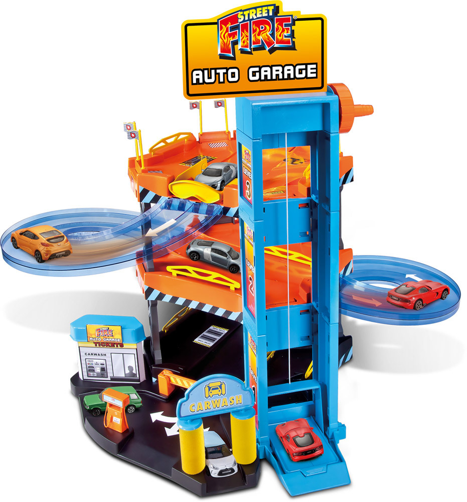 Un set super interactiv care include o parcare cu trei niveluri cu o autostrada, o benzinarie, ascensor si doua modele de masini la o scara de 1:43. Cu acest set, copilul se va familiariza cu o adevarata parcare reala, care garanteaza ore lungi de joc de neuitat.