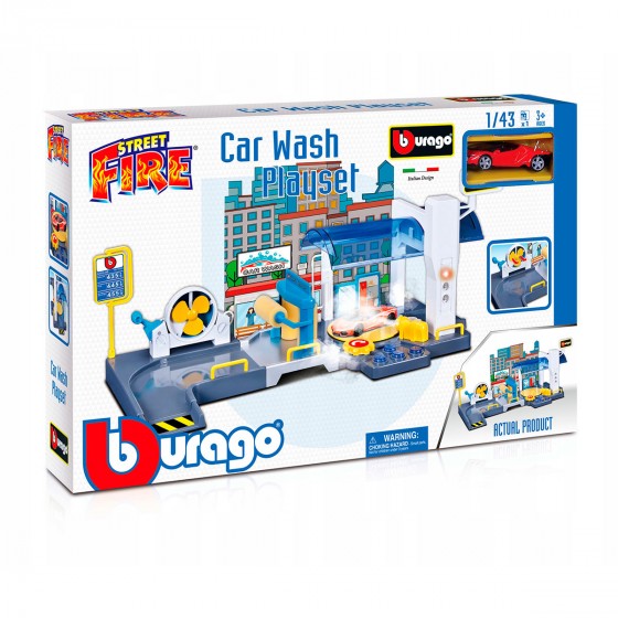 Setul de joaca – Spalatorie Auto este o adevarata descoperire! Cu acest set copilul poate aranja un joc de poveste! Setul reprezinta o spalatorie Street Fire cu o masina model la scara 1:43.