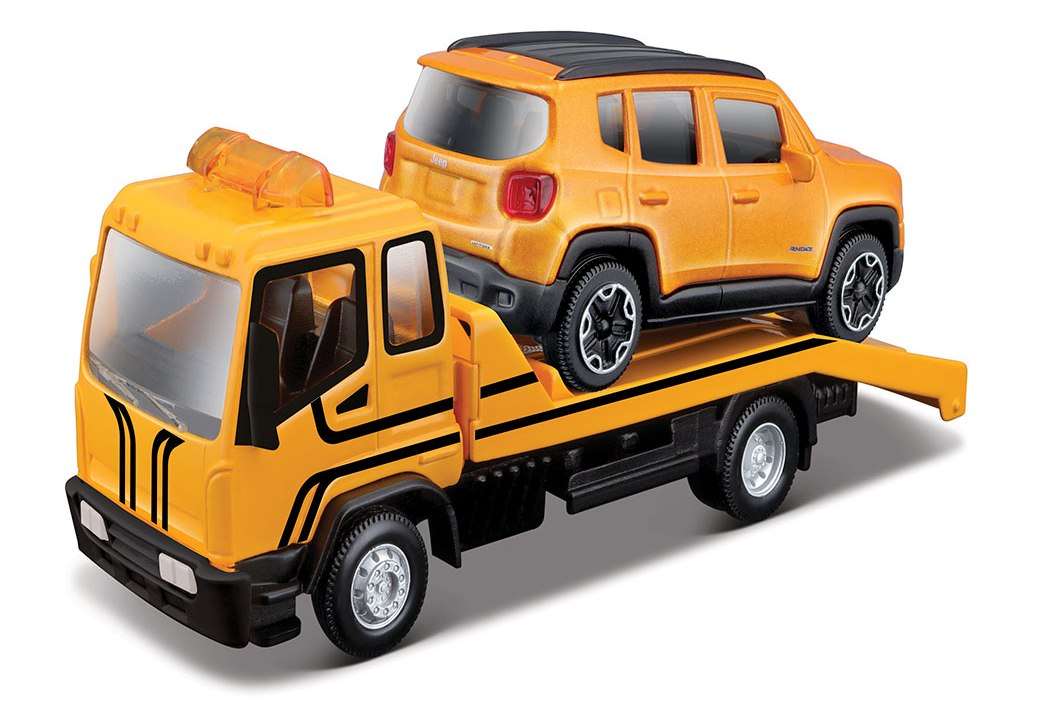 Setul de joaca Evacuator cu masinuta Jeep Renegade, Bburago va fi un cadou excelent atat pentru un copil pasionat de masini mici, cat si pentru un fan adult din industria auto globala.