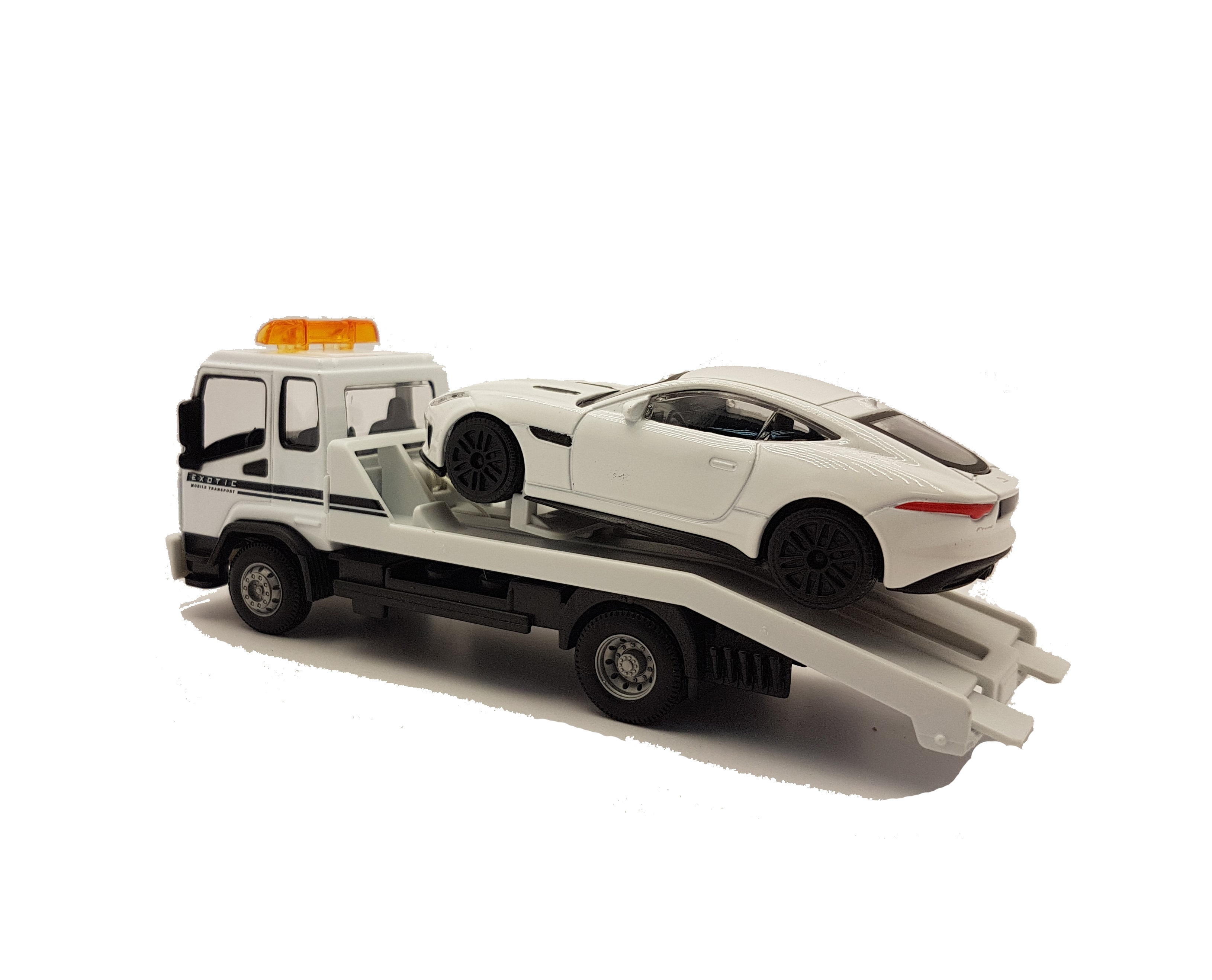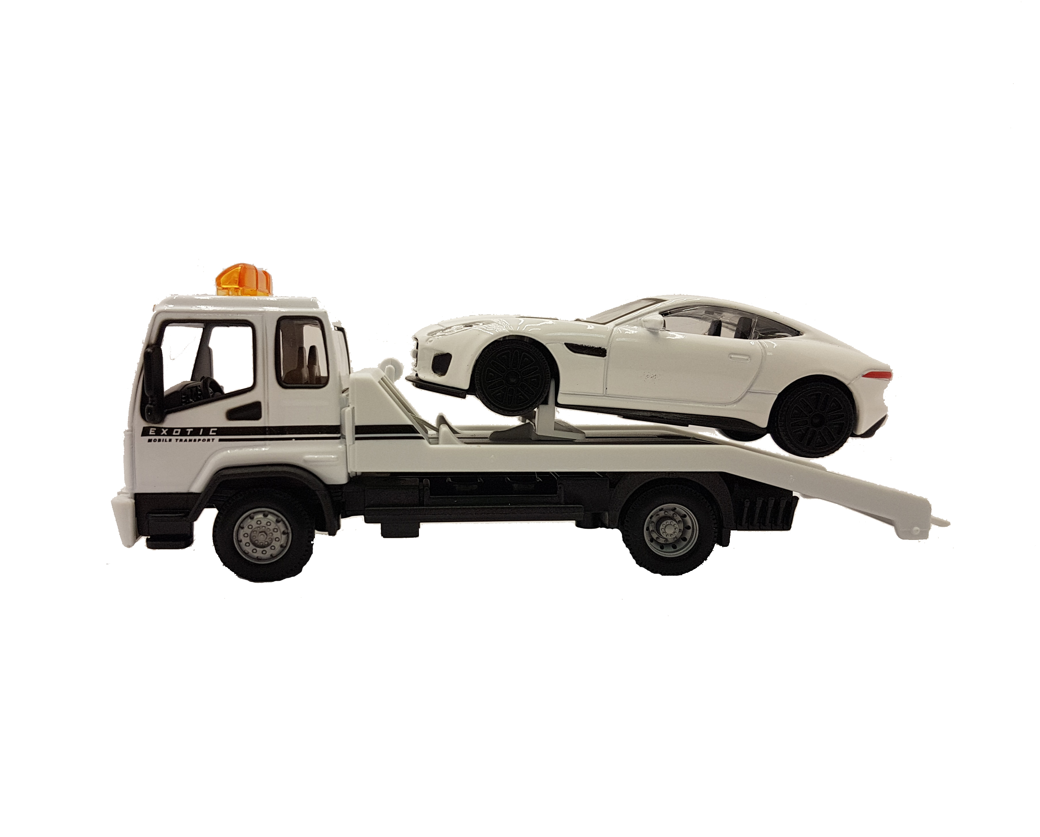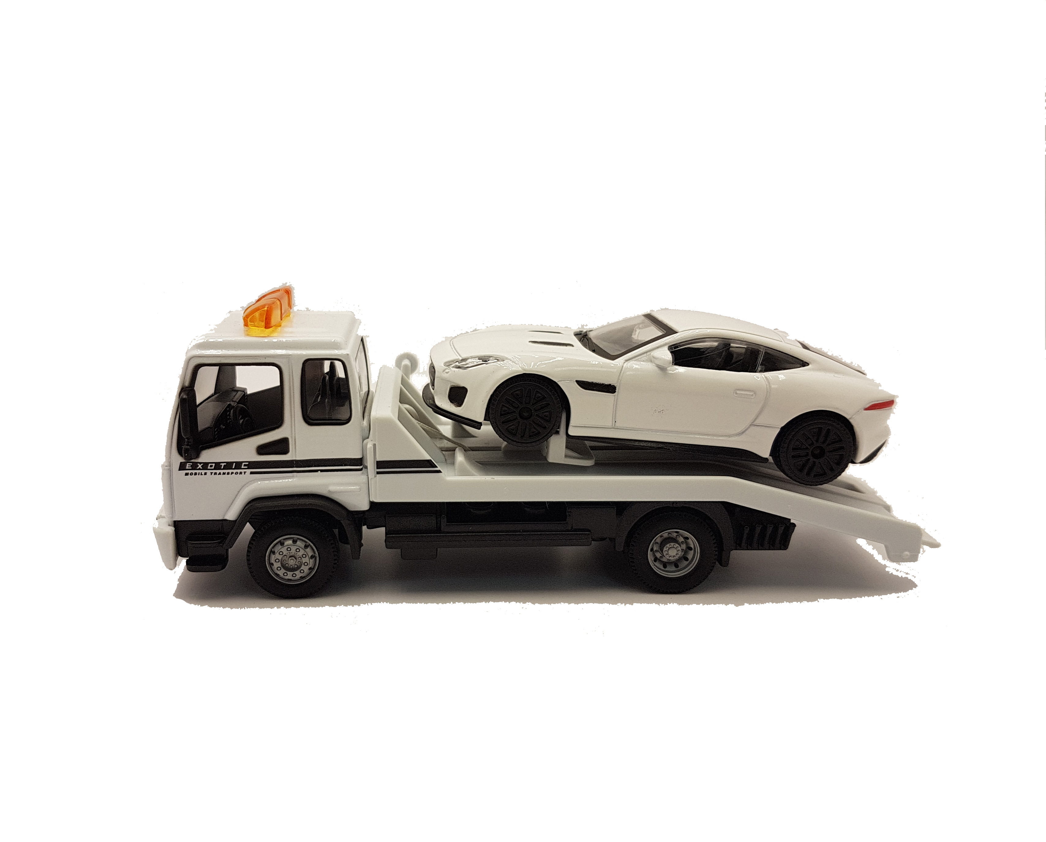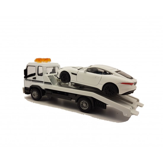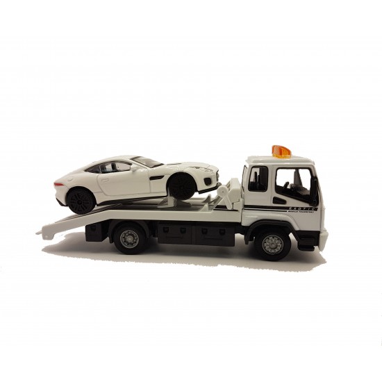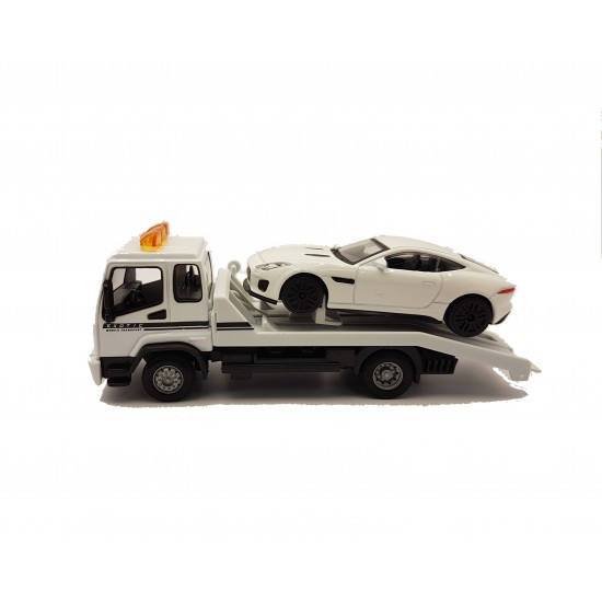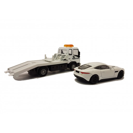 Acest set unic, evacuator cu masina Jaguar F-Type R Dynamic (V6) va aduce emotii positive direct in mainile celor mici. Acest set ofera o experienta de joc captivanta, stimuland creativitatea si incurajand jocul de rol. Camionul poate sa coboare platforma pentru a permite vehiculului sa ocupe spatiu pe platforma cu usurinta.