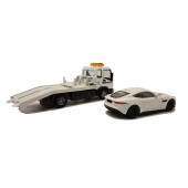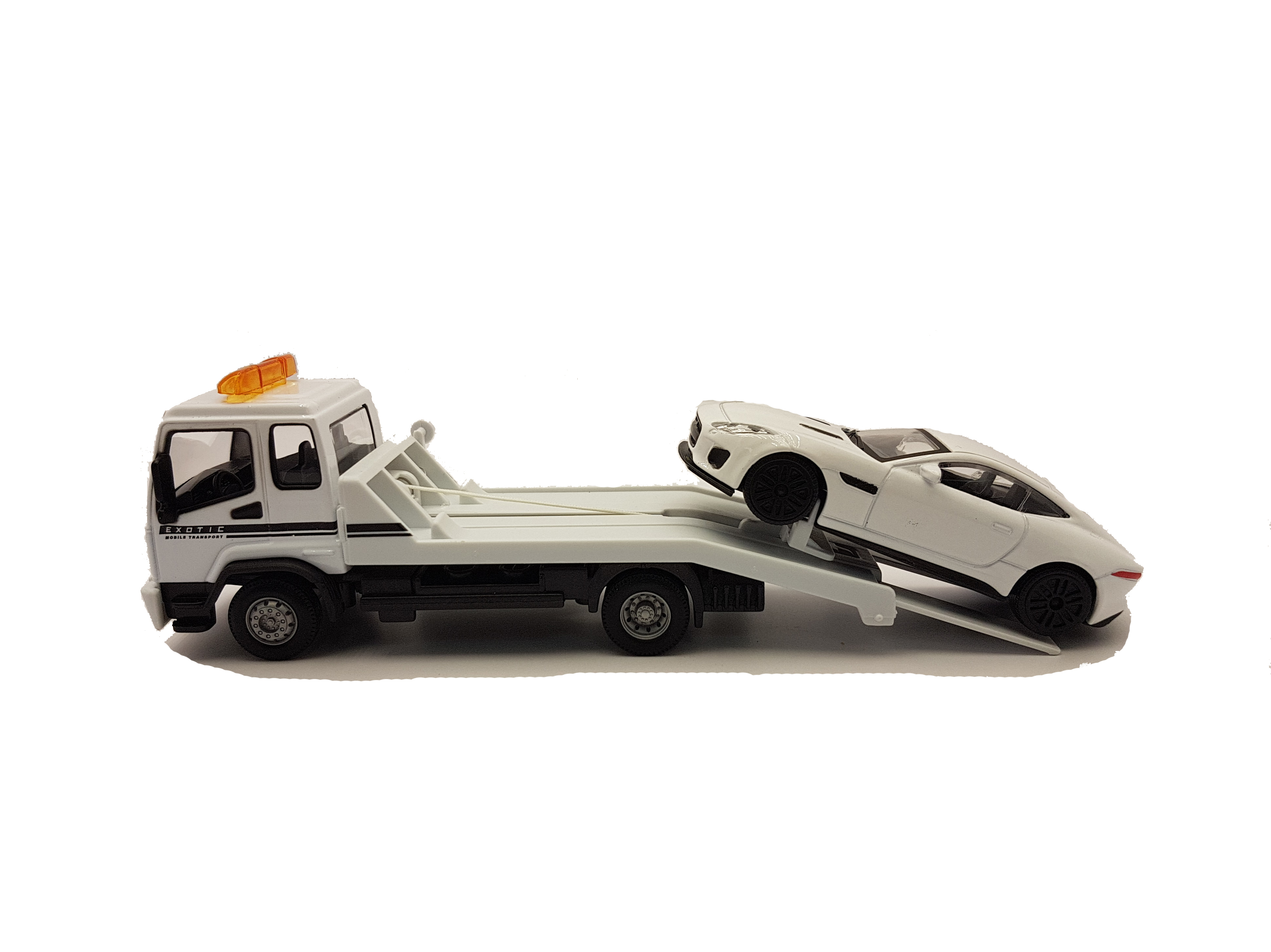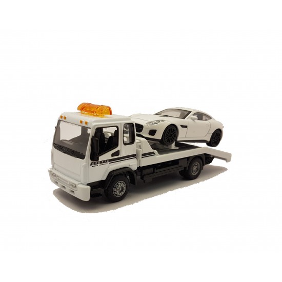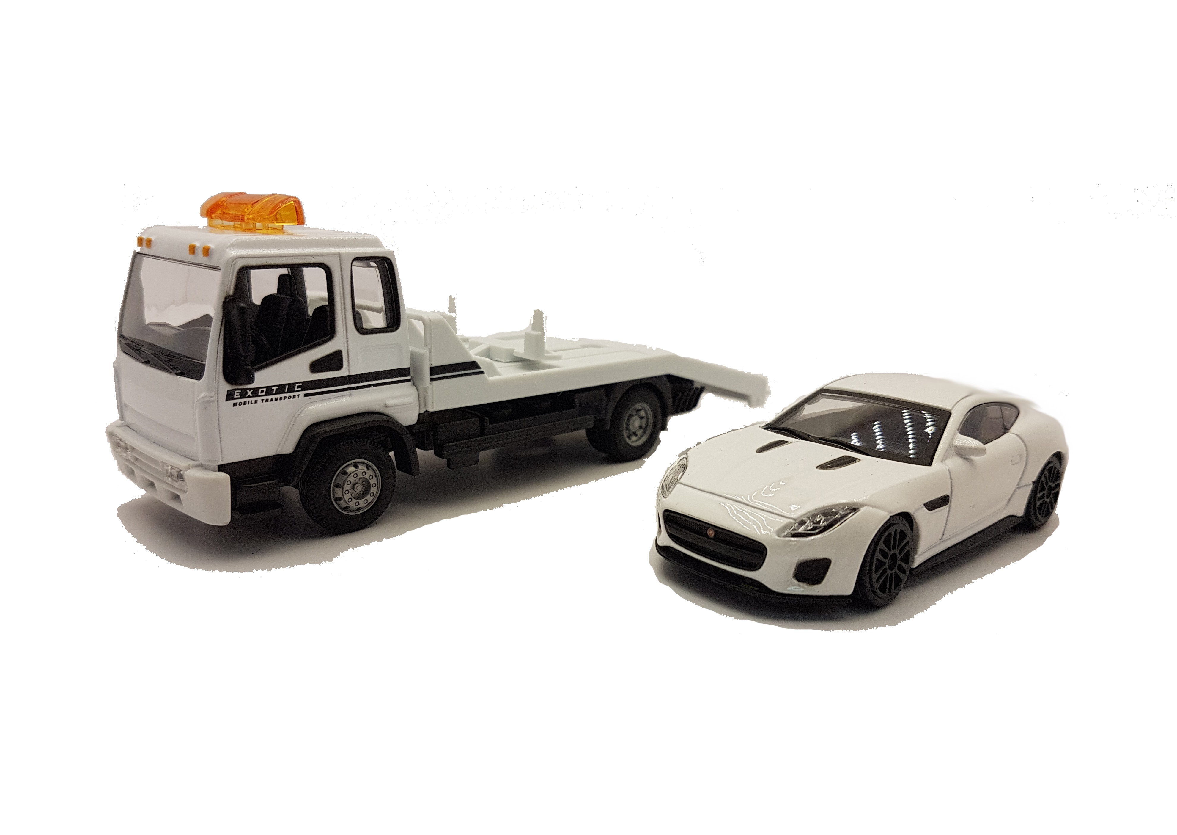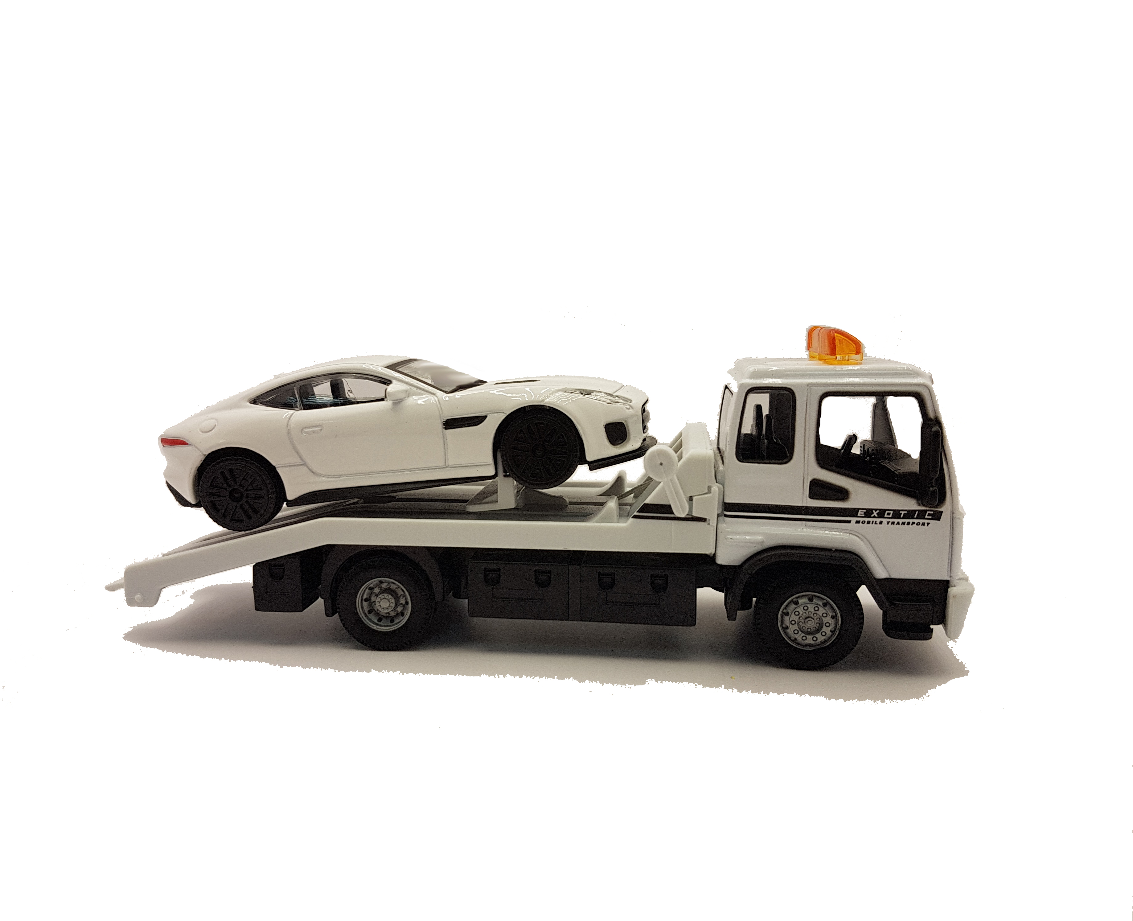 Acest set unic, evacuator cu masina Jaguar F-Type R Dynamic (V6) va aduce emotii positive direct in mainile celor mici. Acest set ofera o experienta de joc captivanta, stimuland creativitatea si incurajand jocul de rol. Camionul poate sa coboare platforma pentru a permite vehiculului sa ocupe spatiu pe platforma cu usurinta.