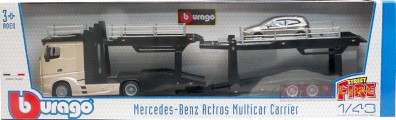 Setul de joaca - TRUCKER Mercedes-benz Actros - VW Polo GTI Mark 5. Este un cadou extraordinar nu numai pentru tinerii pasionati de masini, dar si pentru colectionarii adulti. Acum puteti transporta cu usurinta mai multe masini in acelasi timp. Vehiculul este prezentat la scara 1:43. Setul de joaca de la Bburago va ajuta la dezvoltarea perspectivei copilului: a capacitatii perceptiei spatiale; a abilitatilor de juca si colectionare. Setul include: Autotransportator Mercedes-Benz Actros - VW Polo GTI Mark 5 Recomandat copiilor de la 3 ani in sus.Confectionat din metal si mase plastice.