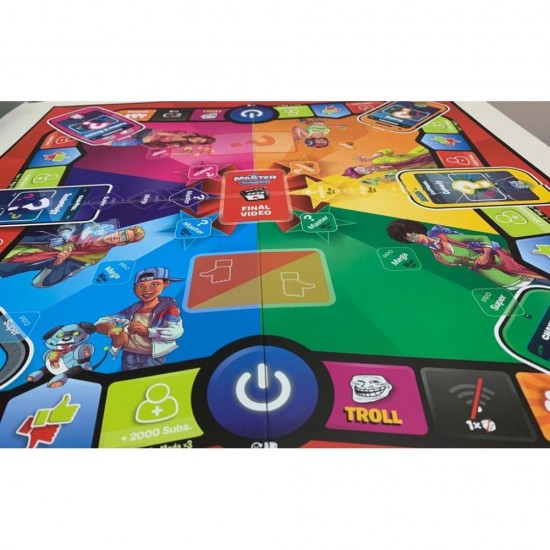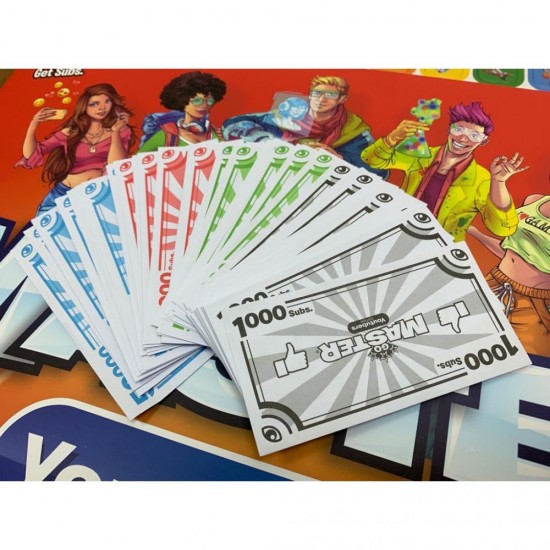 2 table de jocuri, 1 matrita, 6 pioni / YouTubers, 1 clepsidra, 6 carti de oferta, 102 titluri de abonati, 3 seturi de carti (provocari, testare, aprecieri, ...)