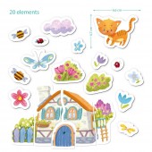 Setul contine 20 de elemente magnetice, care includ o pisica draguta, casa de padure, flori, insecte si fluturi. Acest joc promoveaza creativitatea, imaginatia si abilitatile motorii fine.