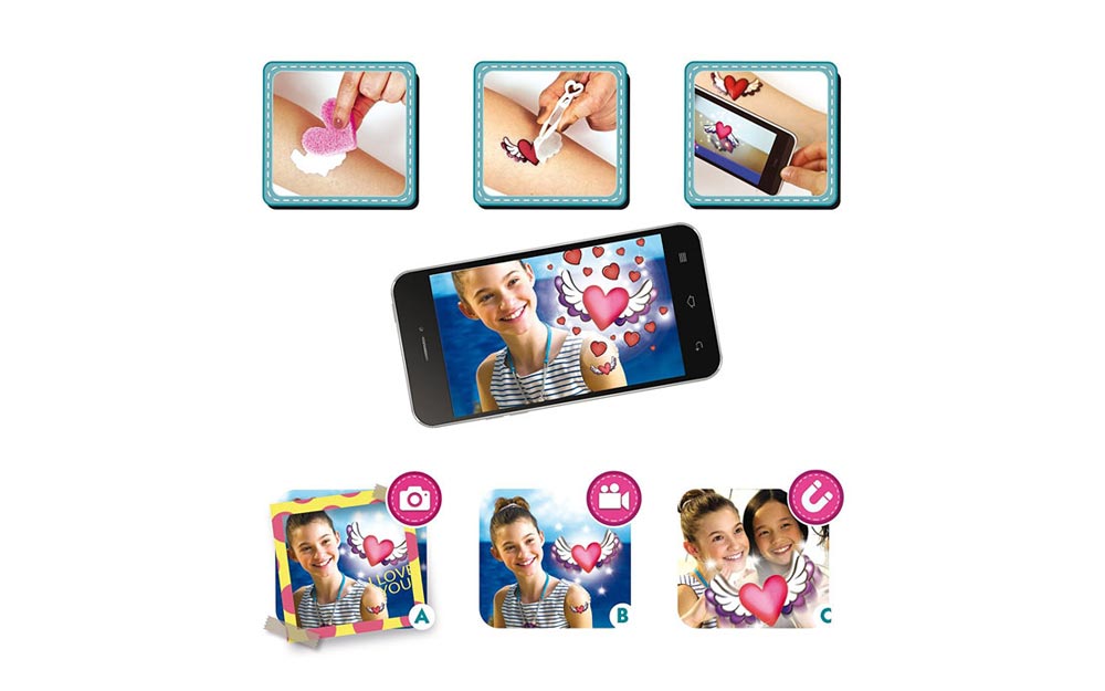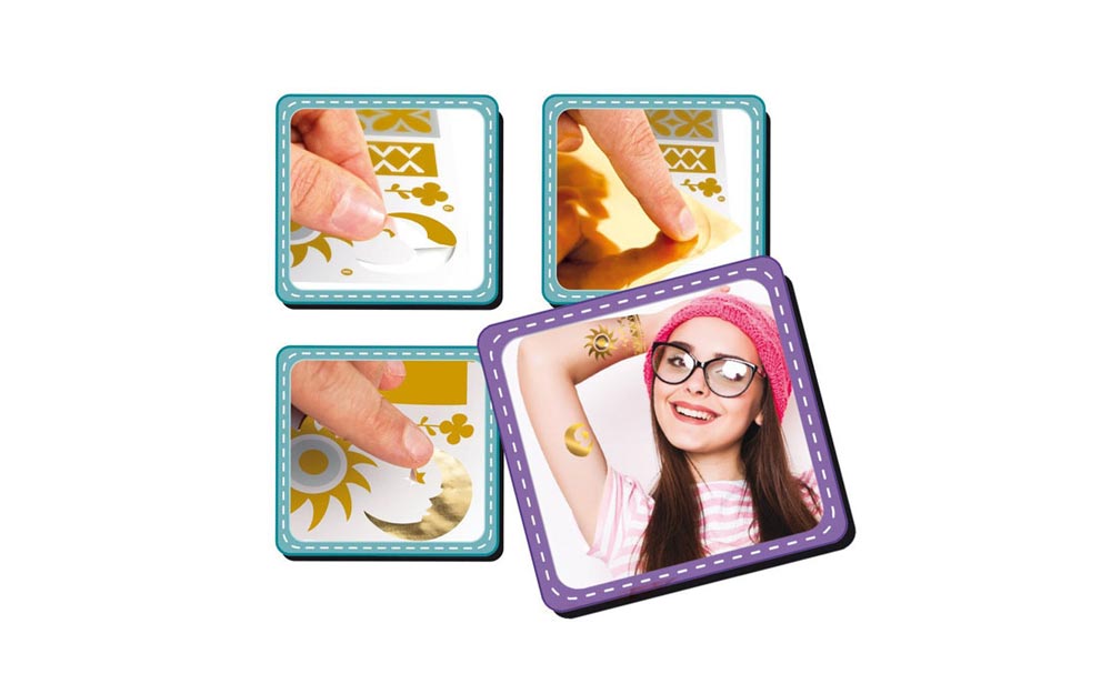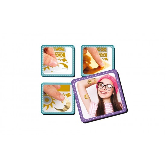 Fa-ti tatuaje stralucitoare, tatuaje cu holograma sau tatuaje creative, frumoase, unice cu noul set de la Toyland. Setul include o masa de frumusete, oglinda autoadeziva, tatuaje pretaiate pe doua fete, holograme colorate, sabloane autoadezive, lipici pentru corp, perie, pudra cu sclipici, vopsea pentru corp, autocolant Crazy chick, si instructiuni incluse.