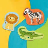 Acest puzzle este o modalitate excelenta pentru micii fani care vor sa descopere animalele salbatice. Exista 6 puzzle-uri in joc, fiecare constand din doua, trei sau patru elemente.