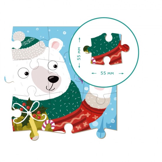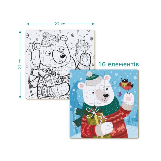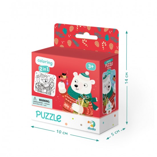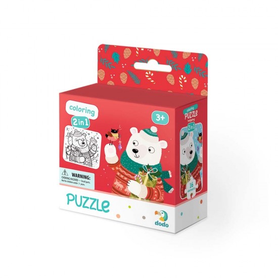 Puzzle 2 in 1 de colorat, Ursuletul de Craciun, 16 el. Dodo