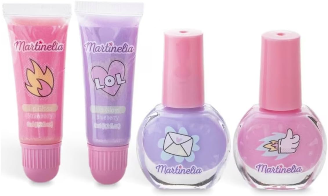 Setul Super Girl include 2 lacuri de unghii solubile in apa, 2 luciuri de buze Shimmer cu aroma de afine si capsuni care ingrijesc usor buzele pentru a le oferi stralucire.