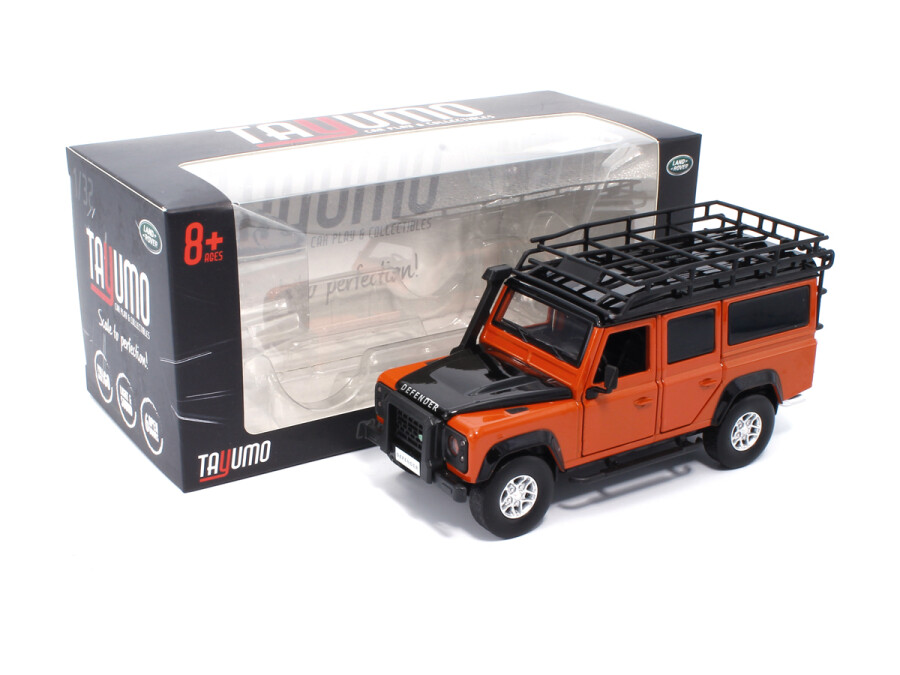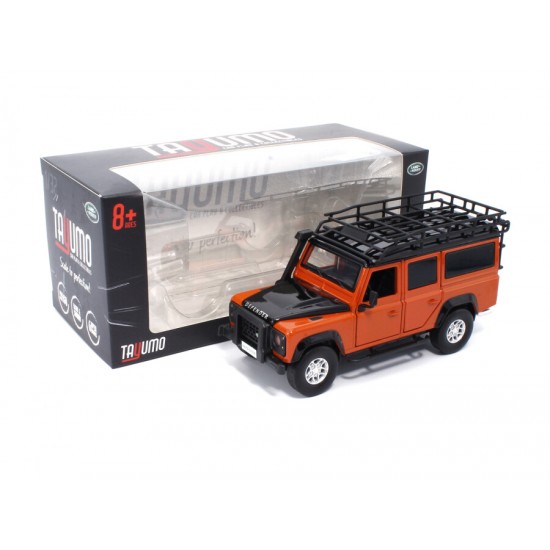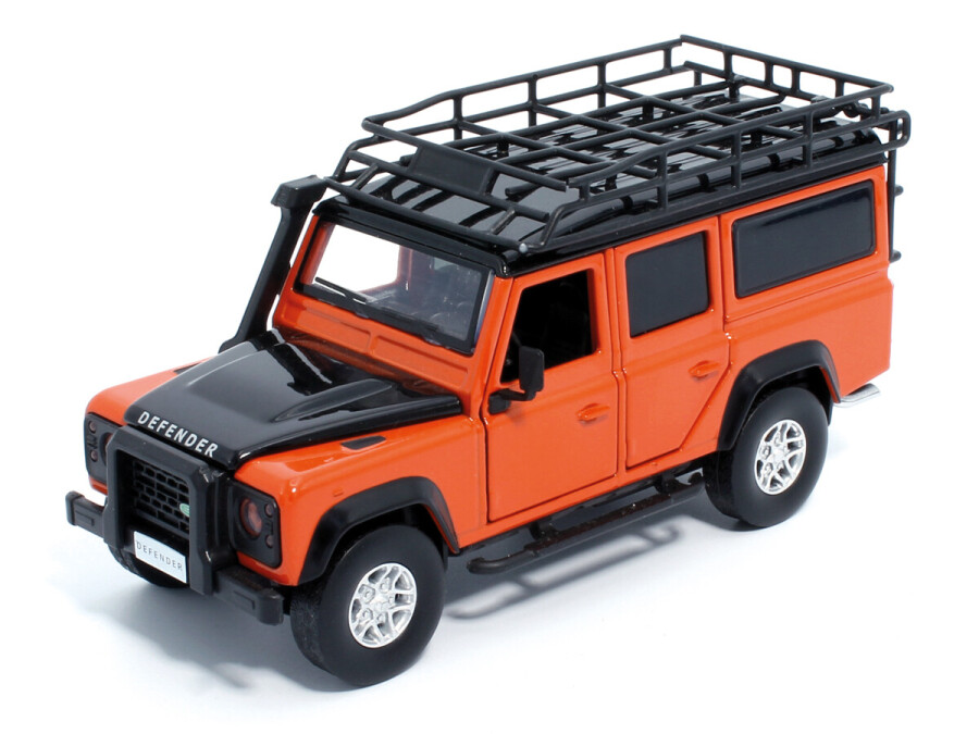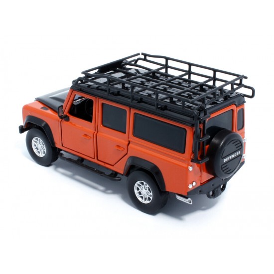 Macheta auto Land Rover Defender 110, 1:32, Tangiers Orange mecanism pull-back, lumini si sunet