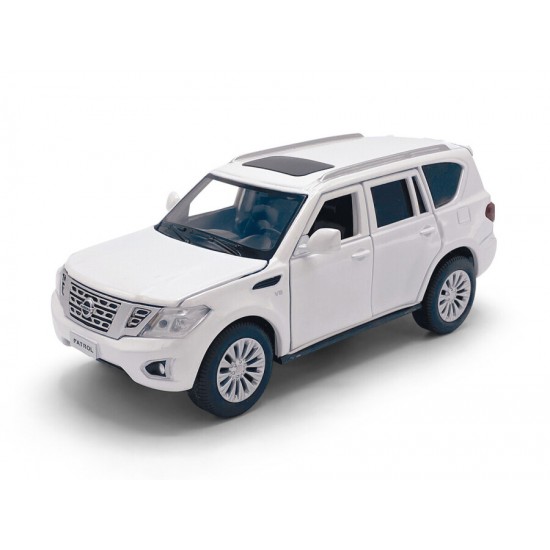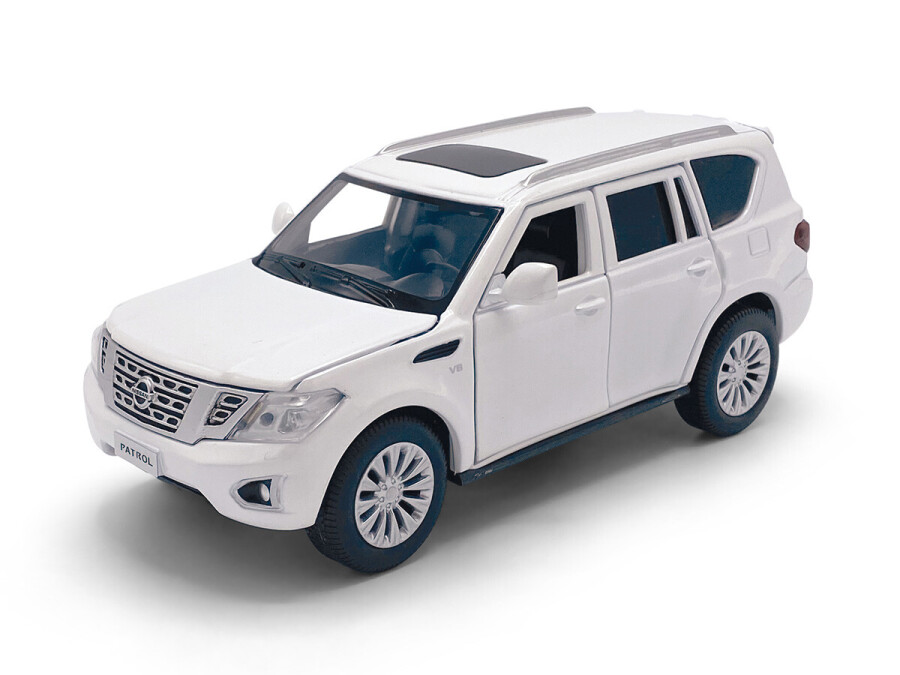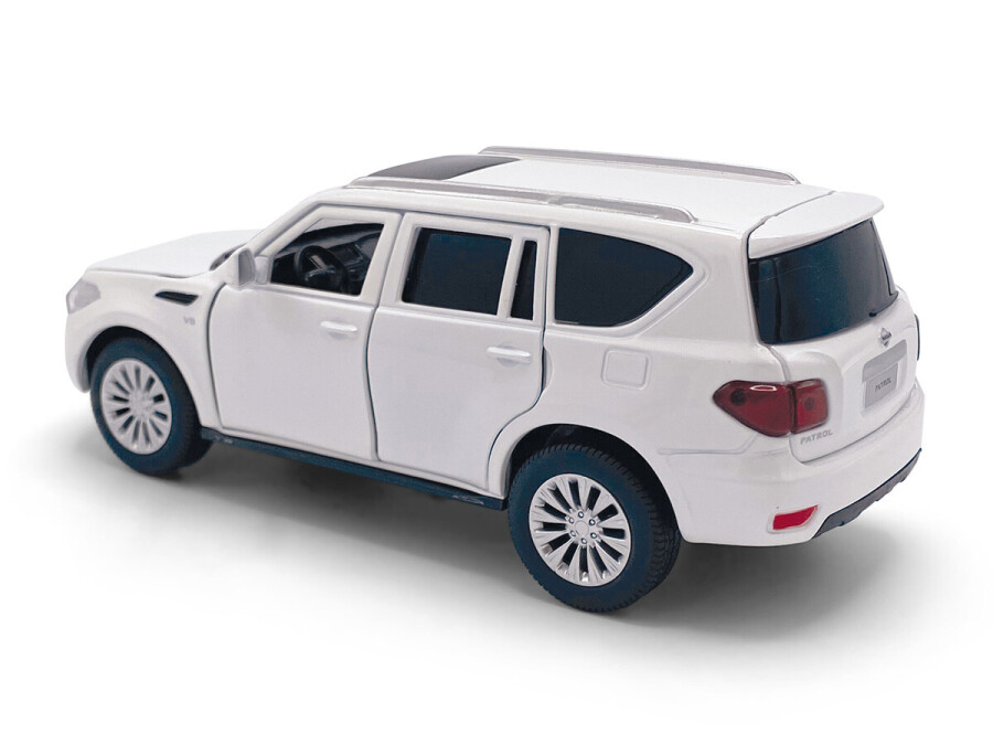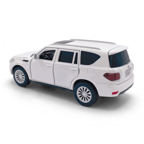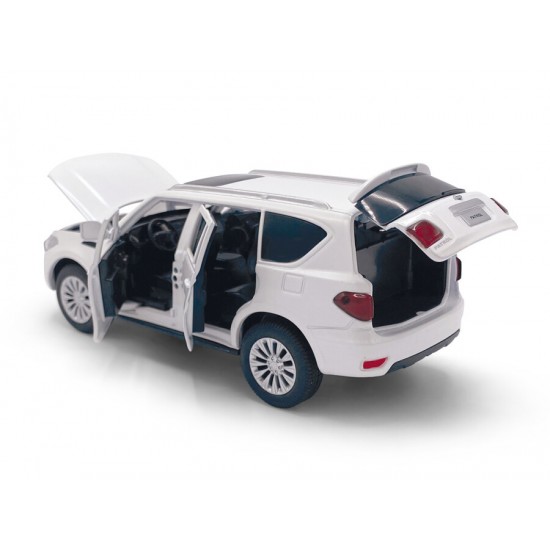 Macheta auto Nissan Patrol Y62, 1:32, White mecanism pull-back, lumini si sunet