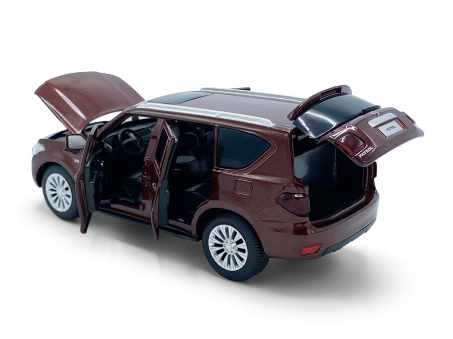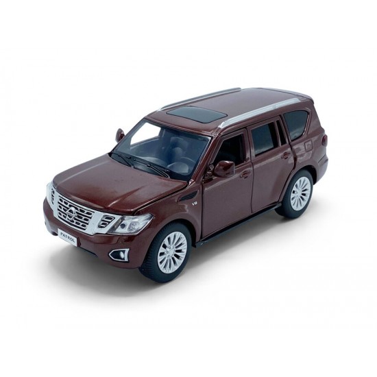 Macheta auto Nissan Patrol Y62, 1:32, Brown mecanism pull-back, lumini si sunet