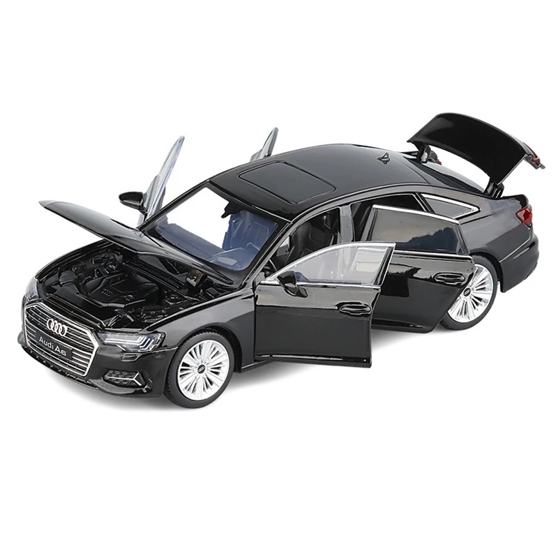 Macheta auto Audi A6, 1:32, Black directie activa roti fata, suspensii, lumini si sunet