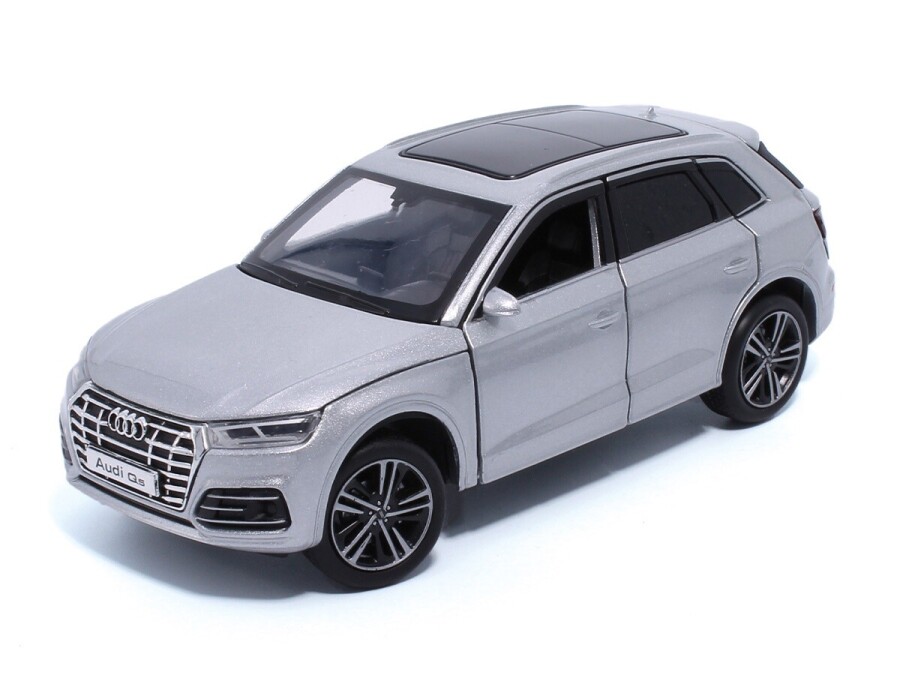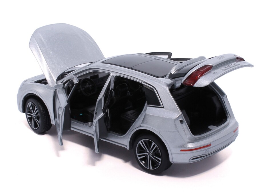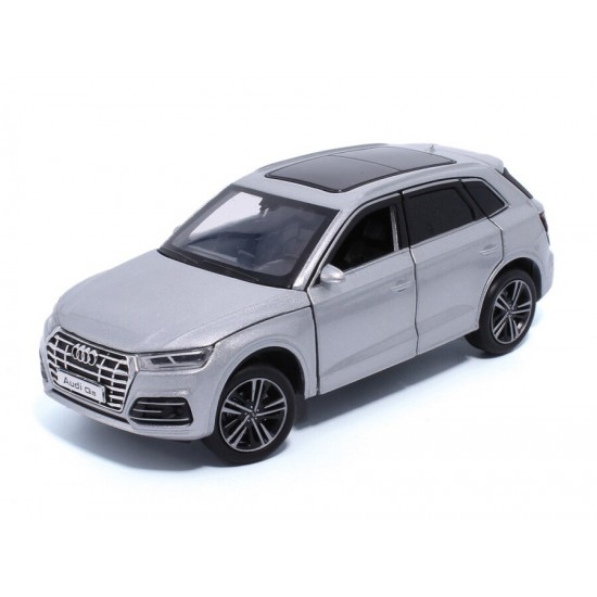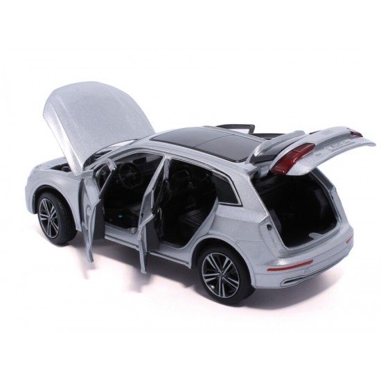 Macheta auto Audi Q5, 1:32, Silver directie activa roti fata, suspensii, lumini si sunet