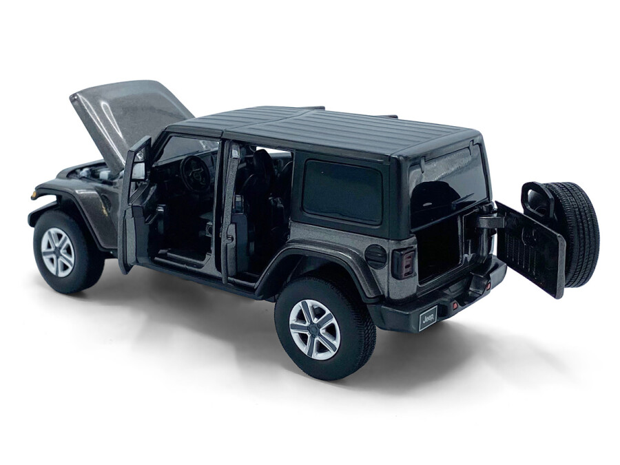 Macheta auto Jeep Wrangler Sahara, 1:32, Grey directie activa roti fata, suspensii, lumini si sunet