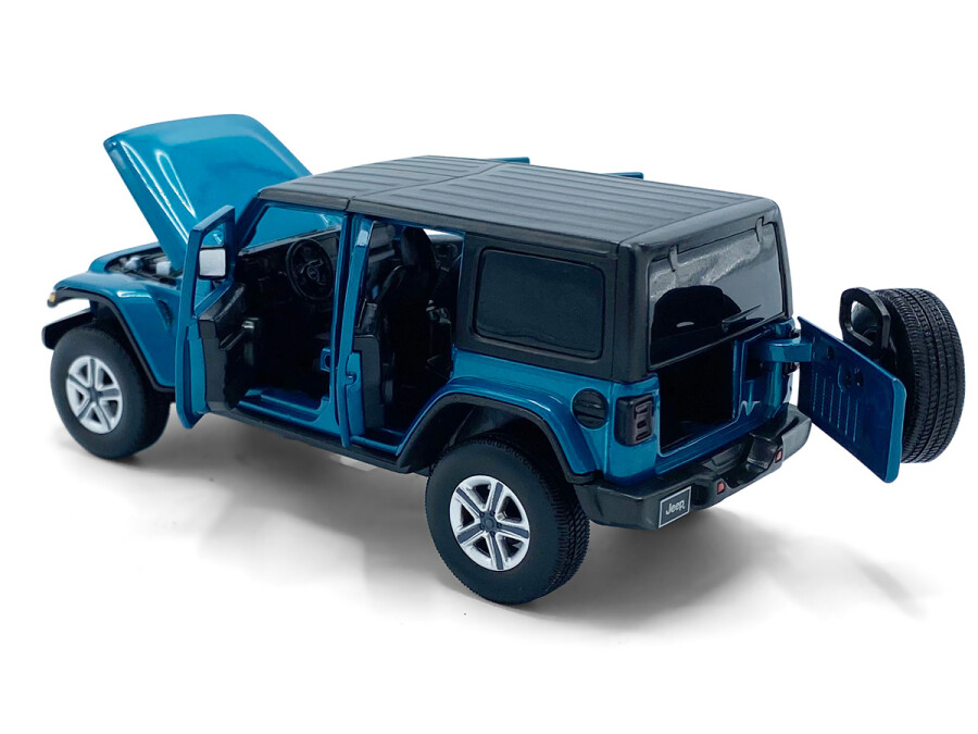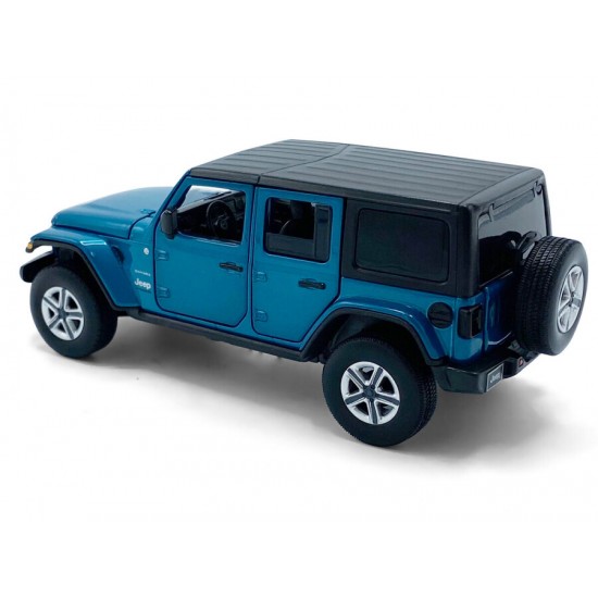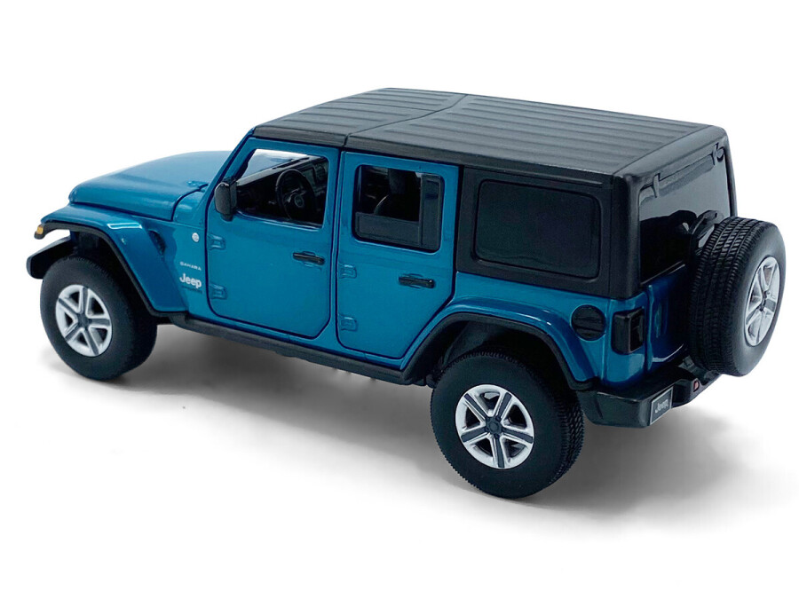 Macheta auto Jeep Wrangler Sahara, 1:32, Blue directie activa roti fata, suspensii, lumini si sunet