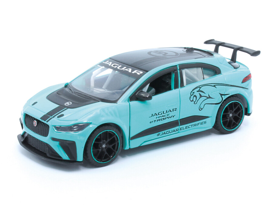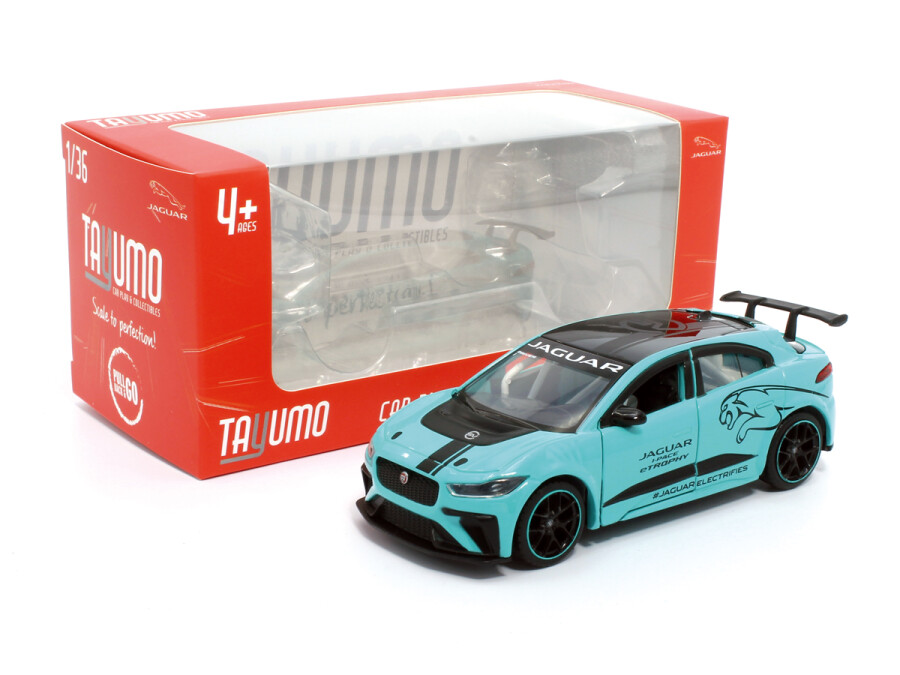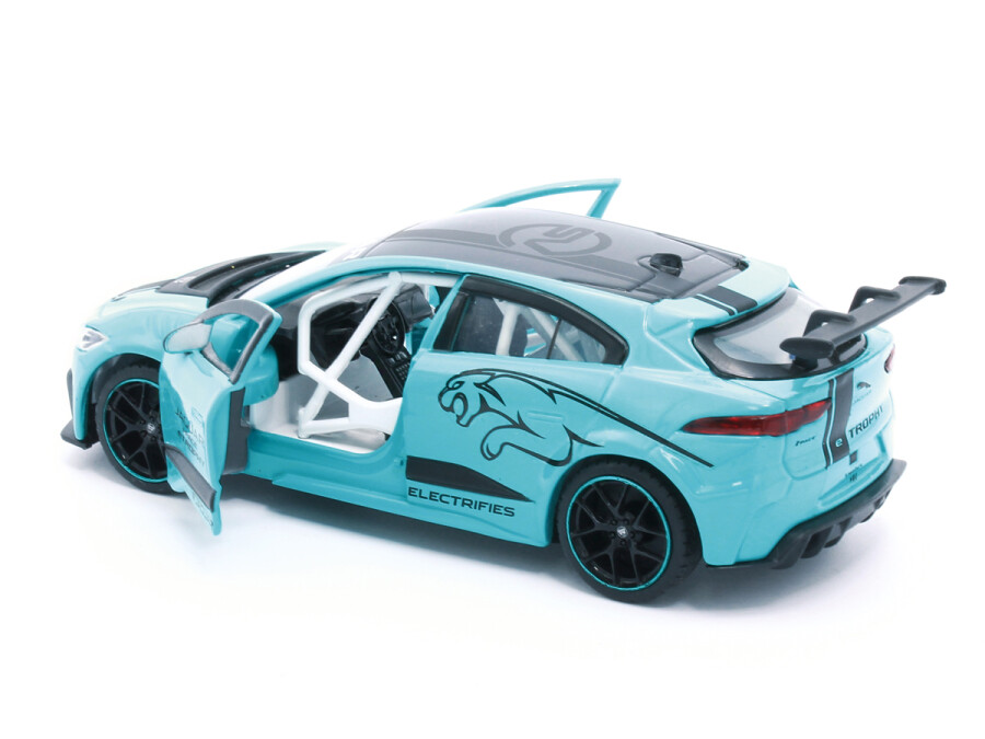 Macheta auto Jaguar I-PACE e-TROPHY, 1:36, Blue, TAYUMO Mecanism pull-back, sincron