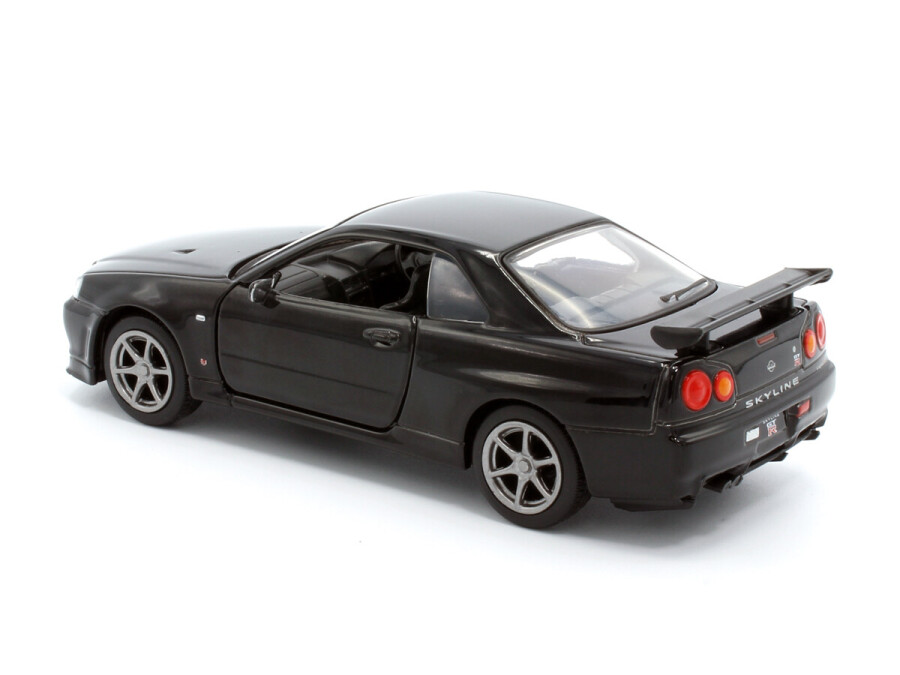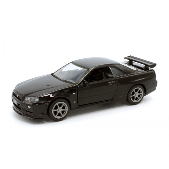 Macheta auto Nissan GT-R34 V-Spec II, 1:36, Black, TAYUMO Mecanism pull-back, sincron