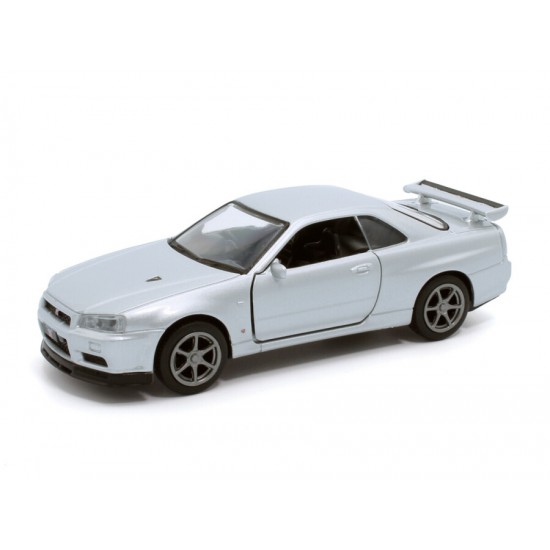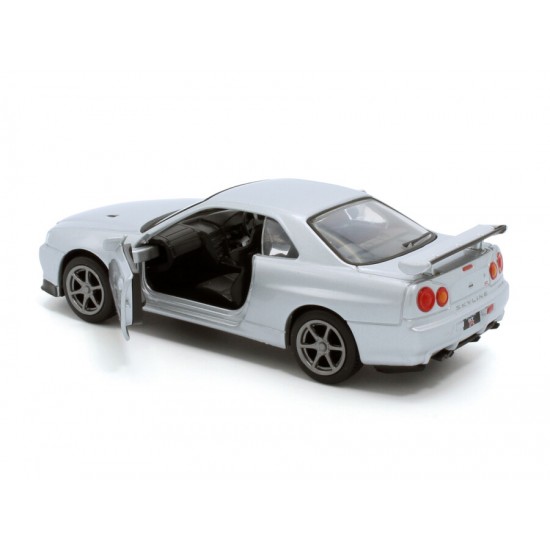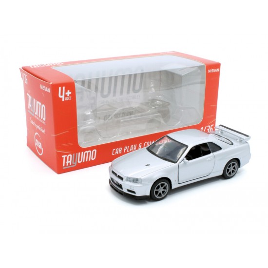 Macheta auto Nissan GT-R34 V-Spec II, 1:36, Silver, TAYUMO Mecanism pull-back, sincron