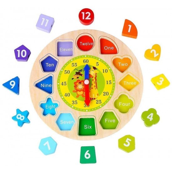 - Sorter educativ din lemn Ceas ,Numere, Forme, Culori